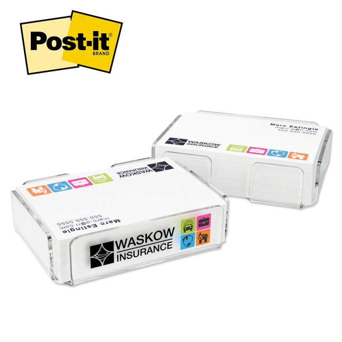 • Holds five or six 3" x 4" 50-sheet Post-it® Custom Printed Note Pads