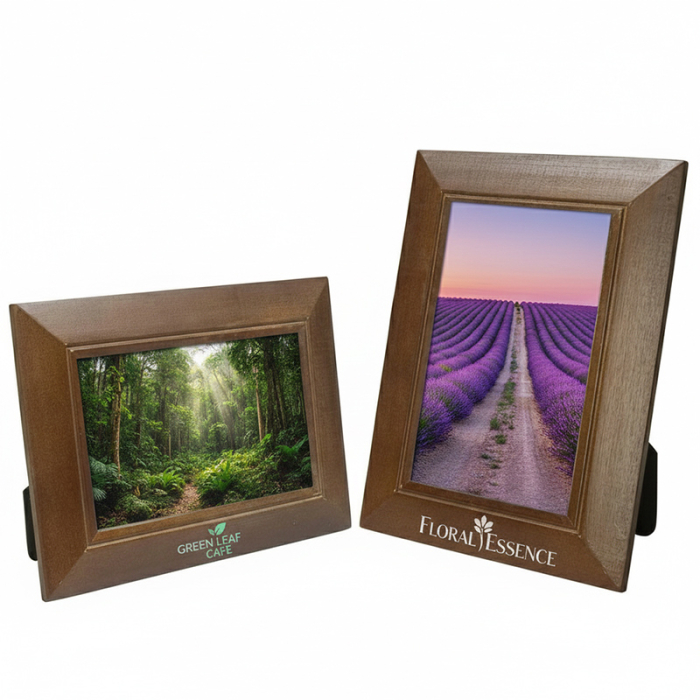 Promotional 4x6 Inch Wood Frames offer a timeless and sophisticated way to showcase photos while delivering long-term brand exposure. Made from durable pine wood, these frames bring warmth and quality to offices, homes, reception areas, and event displays. Available in three elegant finishes—Teak, Walnut, or Black—they blend seamlessly into both modern and traditional décor. The glass front protects photos and enhances clarity, while the black velvet back adds a premium, polished touch. With built-in wall mounts for both horizontal and vertical orientation, this frame provides versatile hanging options. Ideal for corporate promotions, employee recognition, event photography, and client gifting, this custom wood frame transforms meaningful moments into lasting brand impressions.Looking for more? Explore our collection of picture frames right away.Get free design, free online proofs and fastest turnaround offers.
