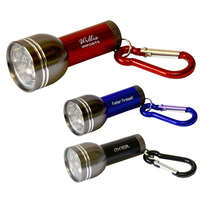 Promotional 6 LED Daylighter Keylights feature 6 LED bulbs powered by 4 LR44 button batteries, included. Offered in various color choices, these elegantly designed custom keychain flashlights have a matching Carabiner, which can be used as a keychain or a clip-on flashlight. Dimensions: 21/4 H x 7/8 W x 7/8 D plus Carabiner. Customize these with your brand and message to make hugely popular handouts during camping, outdoor activities and hiking trails. Order these custom printed giveaways right now to get free design, free online proofs and best price guarantee offers.