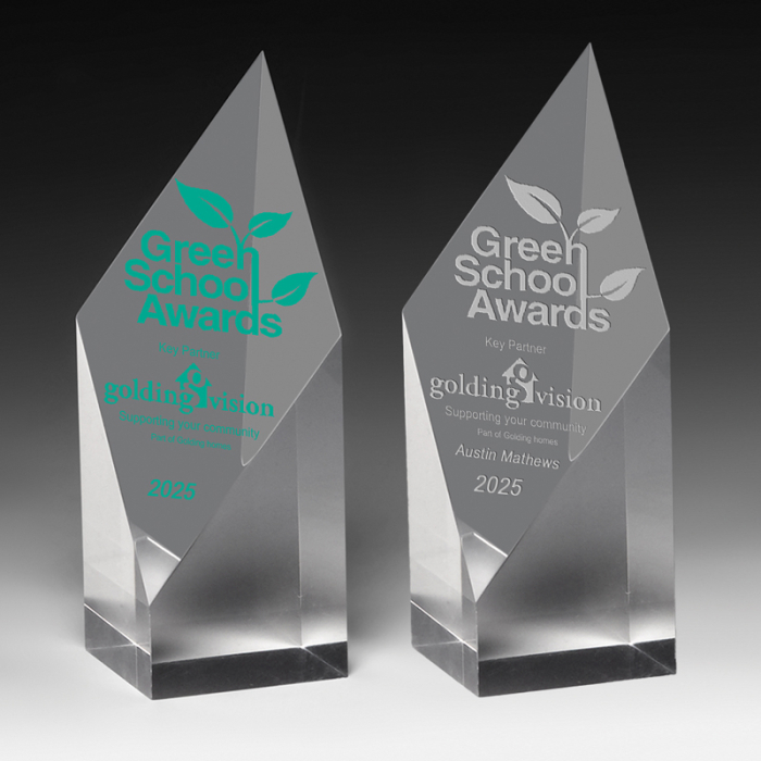 • Diamond obelisk design – 2" thick acrylic creates a sparkling, eye-catching award