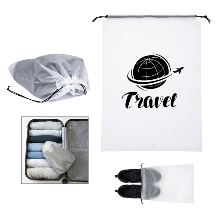 Promotional Aero Drawstring Travel Bags are lightweight, practical, and ideal for keeping travel essentials organized. Made of durable PE material, these bags can hold up to 2 lbs of items such as shoes, toiletries, or small accessories, making them a versatile companion for trips, gym sessions, or everyday errands. The convenient drawstring closure allows for quick access while keeping contents secure, and the bag’s compact design easily fits into luggage, backpacks, or gym bags. Spot cleaning and air drying make maintenance simple and hassle-free. Add your custom imprint to create a functional promotional item that keeps your brand visible while offering practical, everyday utility.Looking for more? Explore our collection of drawstring bags  right away.Get free design, free online proofs and fastest turnaround offers.