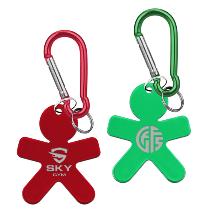 Promotional Aluminum Figure shaped Key Holders and Dog Tags with Carabiner