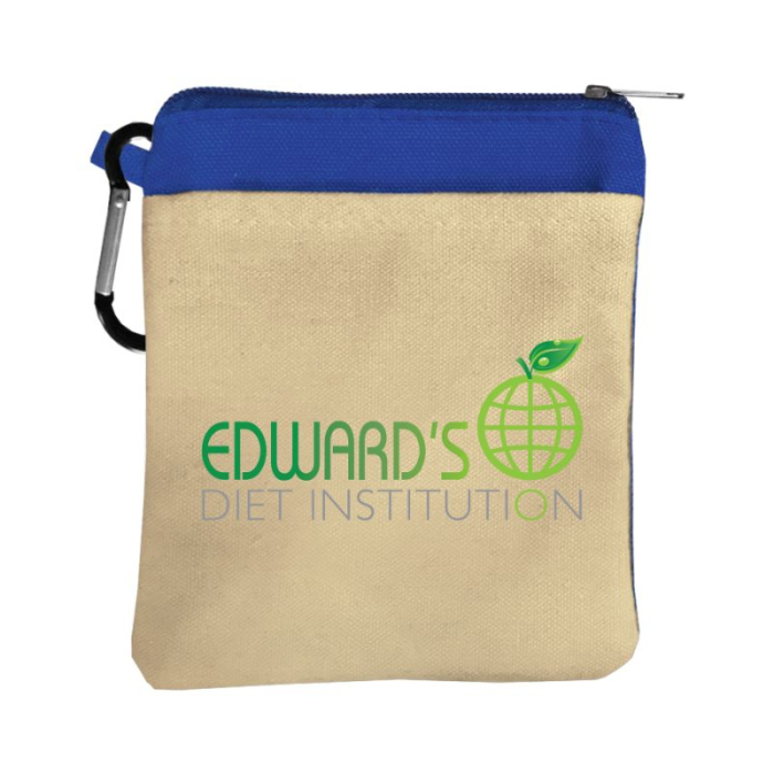 Request a quote to know wholesale savings for Promotional Canvas Zipper Pouches with Carabiner.