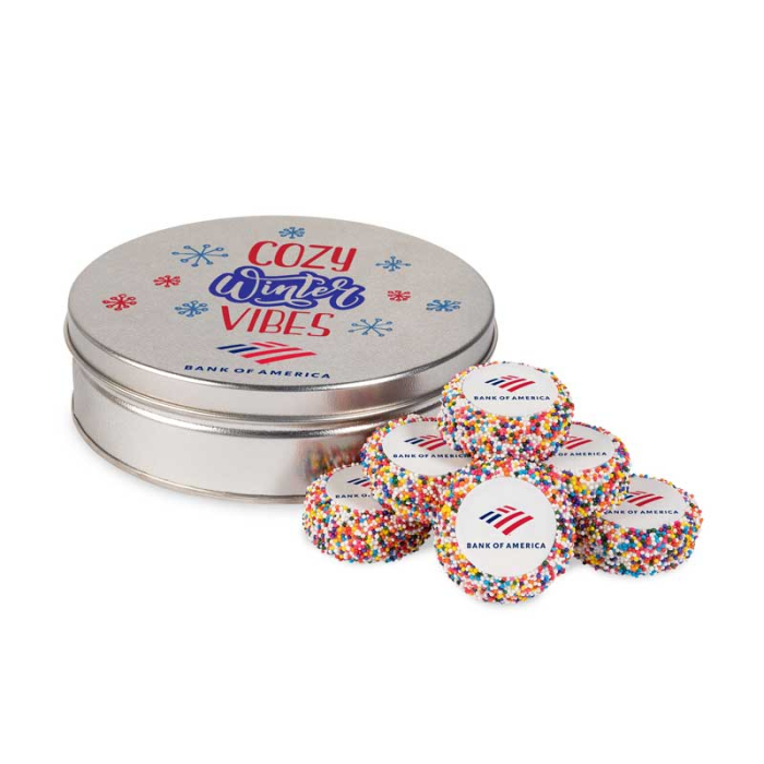 Promotional Custom Dipped Sandwich Cookies in Tins - 7 Pieces