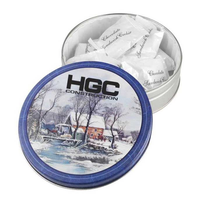 Promotional Glad Tidings Tins with Chocolate Covered Sandwich Cookies