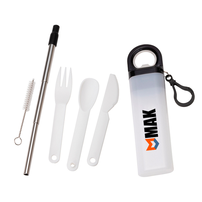 Promotional Griffith 3-in-1 Metal Straw Cutlery Set and Bottle Openers