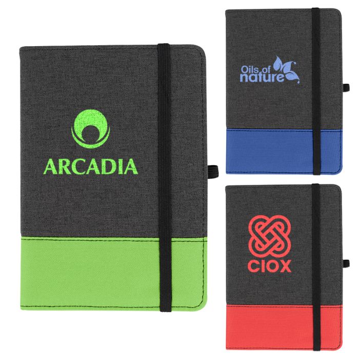 Promotional Lineage RPET Journals feature cover made from post consumer recycled Polyester (rPET). Paper, elastic band and elastic pen loop are not rPET. Includes 80 Page lined notebook, matching bookmark, strap closure and pen loop; available in various classic color choices; customize with your brand for your upcoming corporate events. Order these handy journals right away to get free design, free online proofs and fastest turnaround offers.