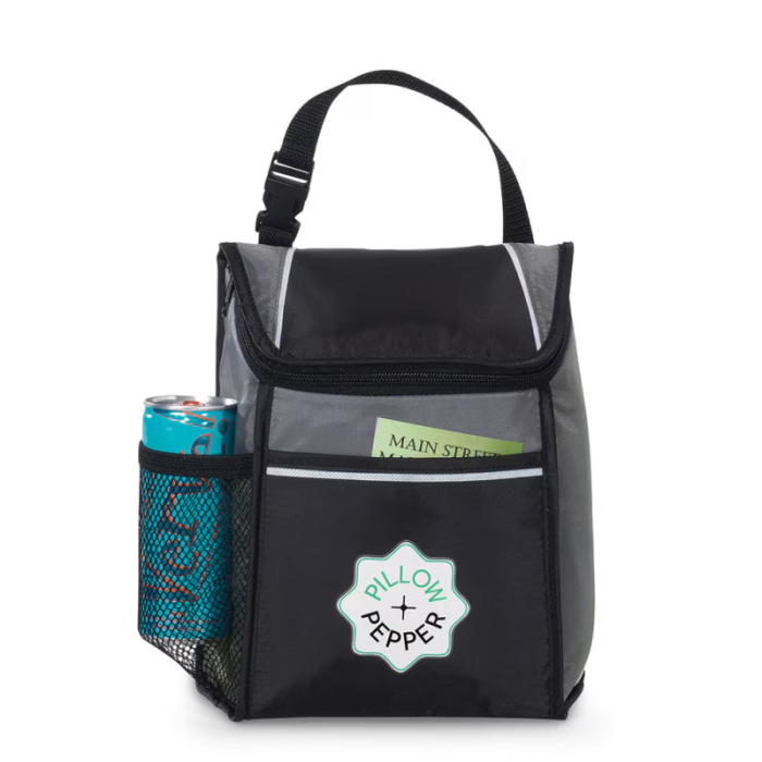 Promotional Link Lunch Coolers are designed to keep your food and beverages cold while providing practical organization. The 7-can capacity thermal-lined compartment ensures contents stay fresh, while a front slash pocket and side mesh pocket offer quick access to smaller items or a water bottle.For added convenience, the cooler includes a removable ID tag for personalization and an attachment buckle to secure it to a backpack, tote, or personal bag. The zippered closure, top grab handle, and PVC- and phthalate-free construction make this a safe, eco-friendly, and portable solution for everyday lunch transport or promotional giveaways.Looking for more? Explore our collection of cooler bags right away.Get free design, free online proofs and fastest turnaround offers.