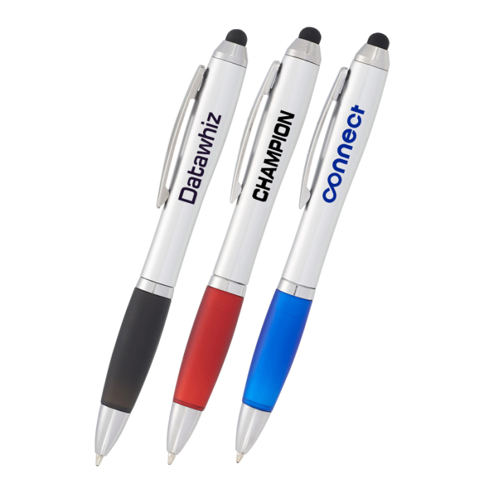 The Nash Ballpoint Pen-Stylus features a twist-action retractable ballpoint and a soft rubber stylus for touchscreen devices. Made of plastic, it includes a clip for easy attachment to pockets or notebooks.Order these stylus pens  right away to get free design, free online proofs and fastest turnaround offers.