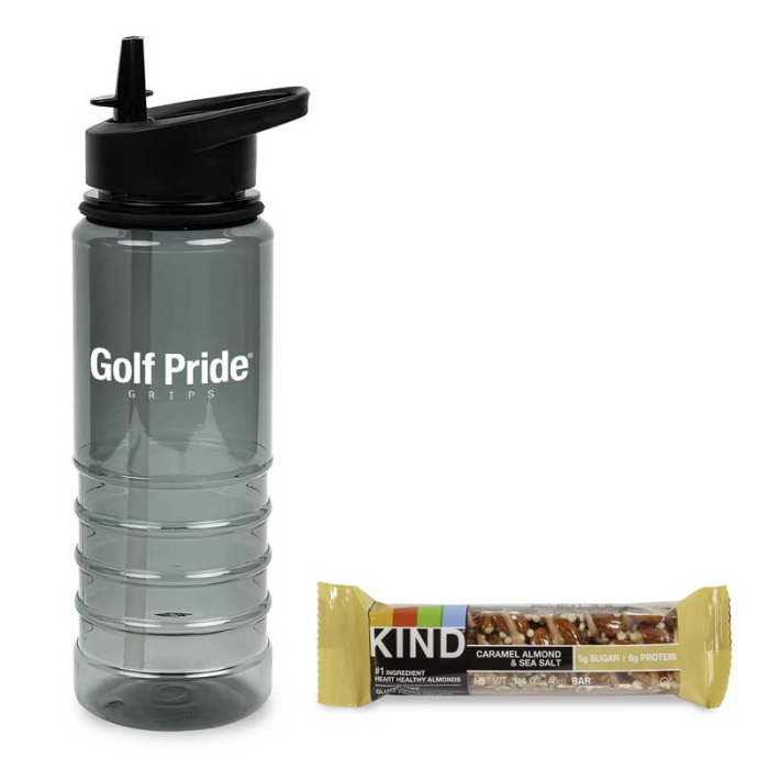 Promotional On the Go Sip n' Snack Sets with 25 Oz Tritan Water Bottles offer a practical and memorable giveaway for golf outings, fitness events, or corporate promotions. Each set features a 25 oz Tritan sports bottle with a spill-free flip straw lid and vibrant colored trim, ensuring hydration in style. Paired with a KIND granola bar, it provides a convenient snack for busy, active recipients. BPA free and hand wash recommended, this combination delivers both functionality and brand visibility. Customize the bottle with your logo or message to create a useful, branded gift that will be appreciated and used repeatedly.Looking for more? Explore our collection of gift sets right away.Get free design, free online proofs and fastest turnaround offers.