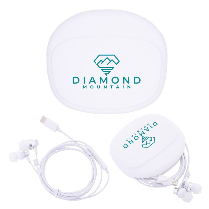 Promotional Opus USB C Wired Earbuds with Silicone Pouch