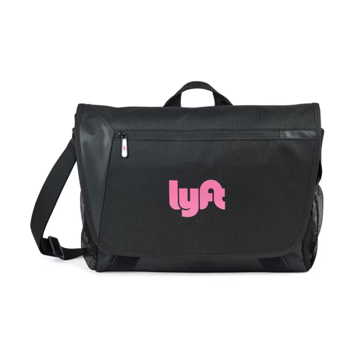 Promotional Sawyer Laptop Messenger Bags are designed to keep laptops, documents, and accessories organized while maintaining a sleek and functional style. The large main compartment features a hook and loop fastener closure that adjusts easily depending on how much you carry, while the interior laptop pocket safely holds devices up to 15 inches. This design provides reliable protection and easy access for daily commutes or business travel.A front zippered pocket offers quick storage for chargers, cables, or personal items, while an additional zippered pocket and pen loop under the front flap help keep smaller essentials neatly arranged. Dual mesh water bottle pockets add everyday convenience, and the adjustable shoulder strap ensures comfortable carrying. A sturdy top grab handle provides another easy carrying option, making this messenger bag a practical choice for work, school, and promotional giveaways.Looking for more? Explore our collection of messenger bags right away.Get free design, free online proofs and fastest turnaround offers.