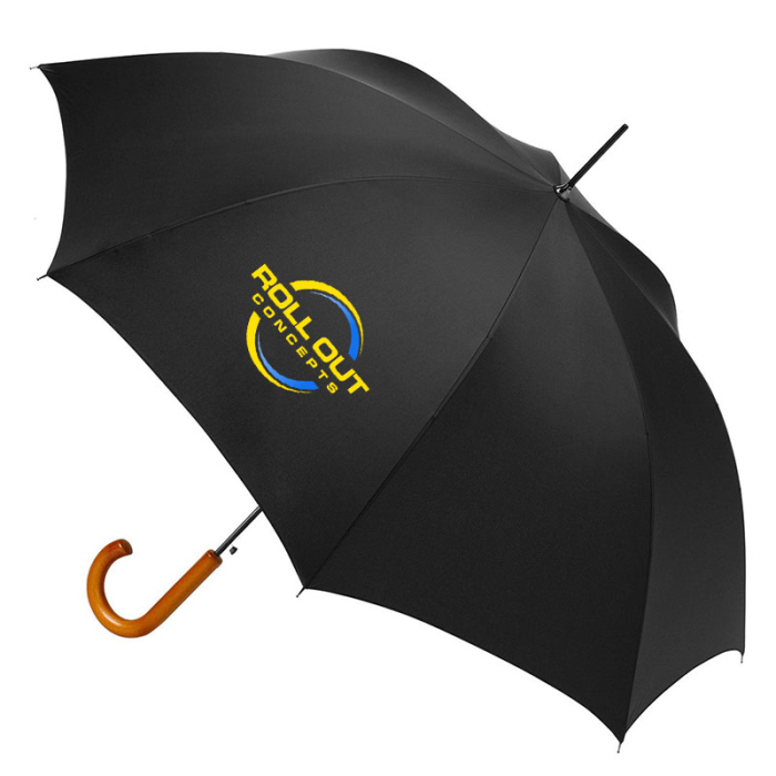 Additional Information: Black electrostatic steel shaft and ribs, Curved wood handle, With our auto open one push of a button opens the canopy, making use a breeze.