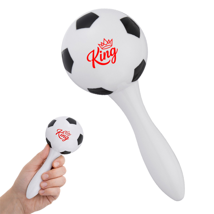 Bring energy to every event with Promotional Soccer Maracas, designed to create noise, excitement, and memorable brand moments. These fun, soccer ball shaped maracas are filled with plastic beans that produce a lively sound when shaken, making them perfect for cheering at sports games, company events, sales seminars, and outdoor celebrations. The sport themed design adds instant appeal, especially for soccer fans and themed promotions. Lightweight and easy to distribute, they are a great way to engage crowds and encourage participation. Please note, these maracas are not intended for children under the age of three.Looking for more? Explore our collection of noise makers right away.Get free design, free online proofs and fastest turnaround offers.