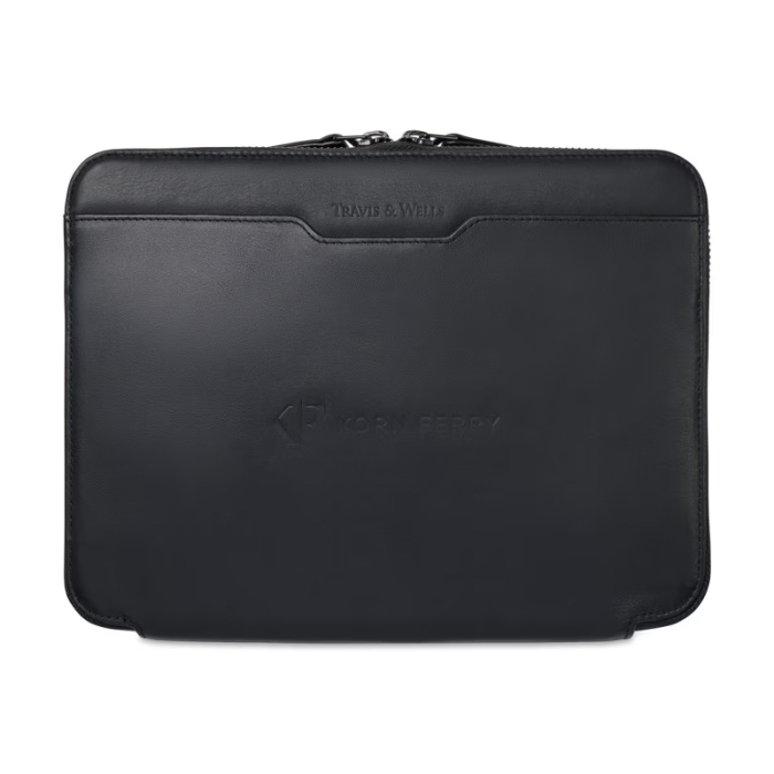 Travis and Wells® Imprinted Envoy Junior Tech Folios combine sophisticated design with smart functionality for modern professionals. Crafted from soft, smooth top-grain leather, this folio delivers a premium look and feel ideal for business settings. A gunmetal zipper closure keeps contents secure, while the front slash pocket offers convenient access to documents or essentials. Inside, two suede-lined tech pockets protect a phone and a tablet up to 10", complemented by interior card organization for IDs or business cards. A leather-covered pen loop with elastic keeps writing tools in place. PVC free and thoughtfully designed, this tech folio is perfect for executive gifting, onboarding kits, meetings, and everyday professional use.Looking for more? Explore our collection of portfolios right away.Get free design, free online proofs and fastest turnaround offers.